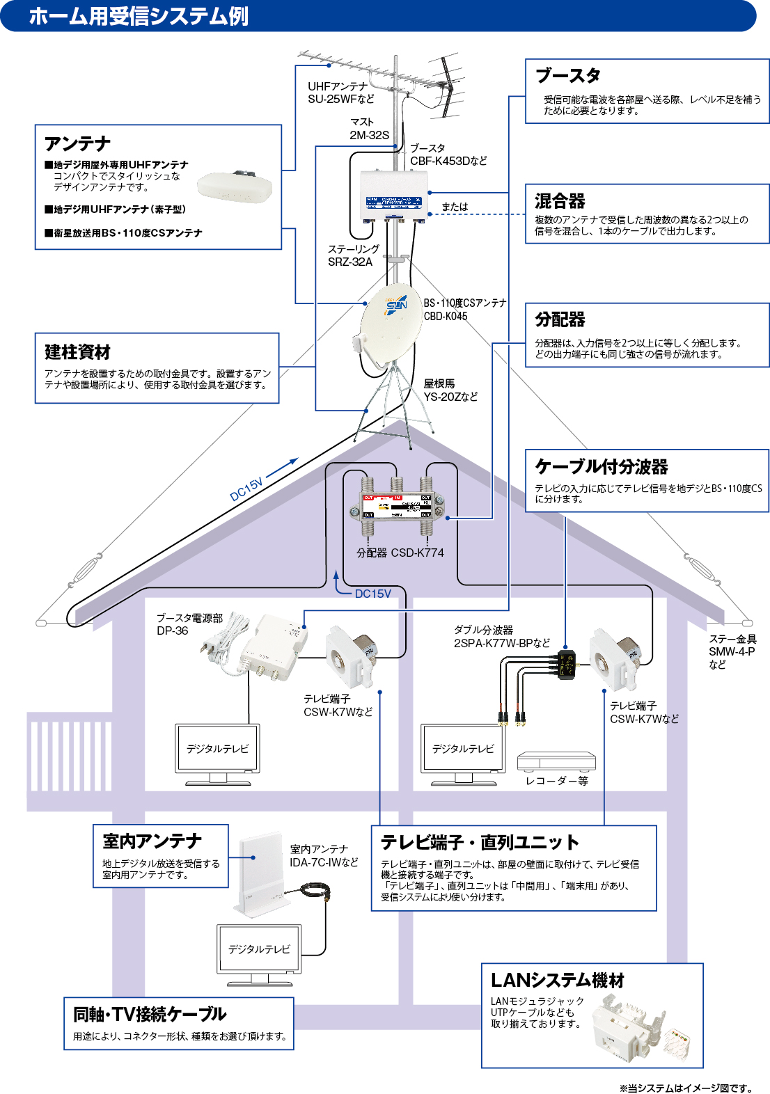 TLC(同軸LAN)導入システム例、各種がご確認いただけます。