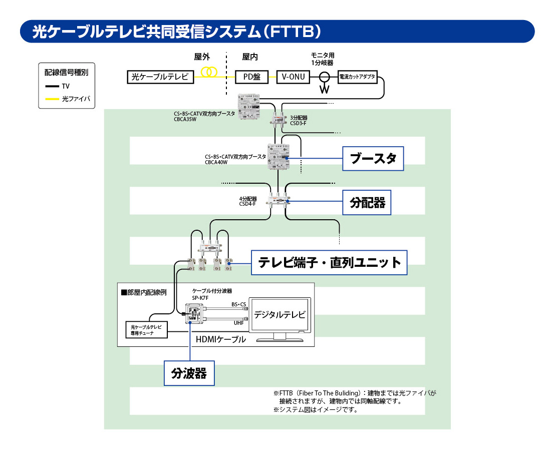共同受信システム例(光ケーブルテレビ FTTB)