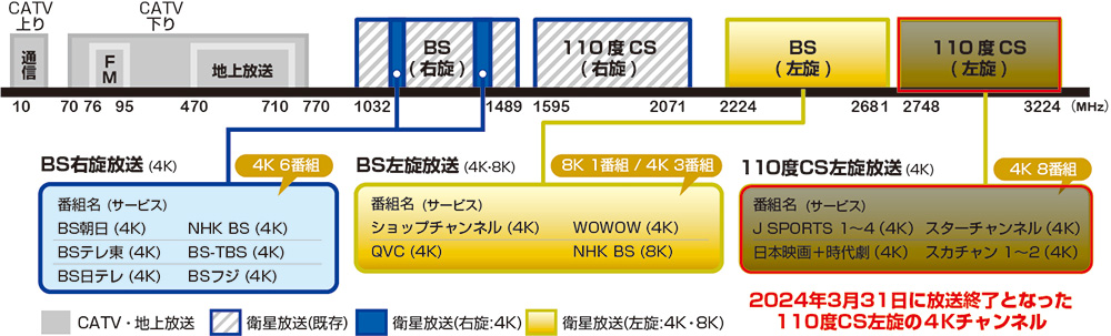 ㈱スカパー・エンターテイメントが、2024年3月31日をもちまして 110度CS左旋で提供する4Kチャンネルを終了いたしました。