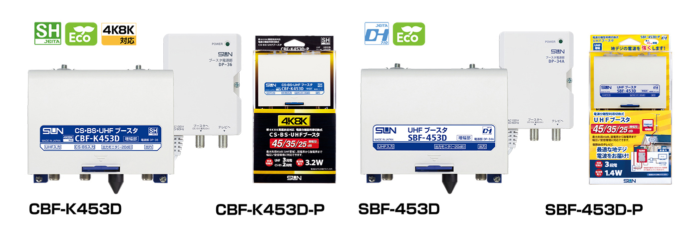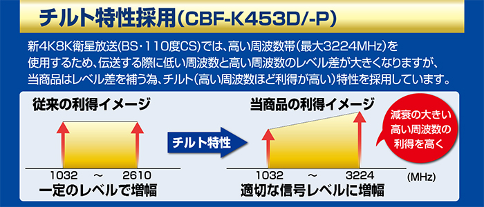 CS・BSタイプは新4K8K衛星放送に対応した「1032~3224MHz」帯域を増幅、幅広いシーンに対応致します。※CBF-K453D/-Pのみ