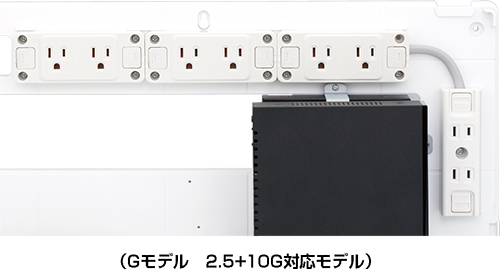 電源コンセントは、多数の機器を設置しても安心な8個口を設定、機器の増設・フリースペースへのネットワーク機器の設置にも柔軟に対応します。