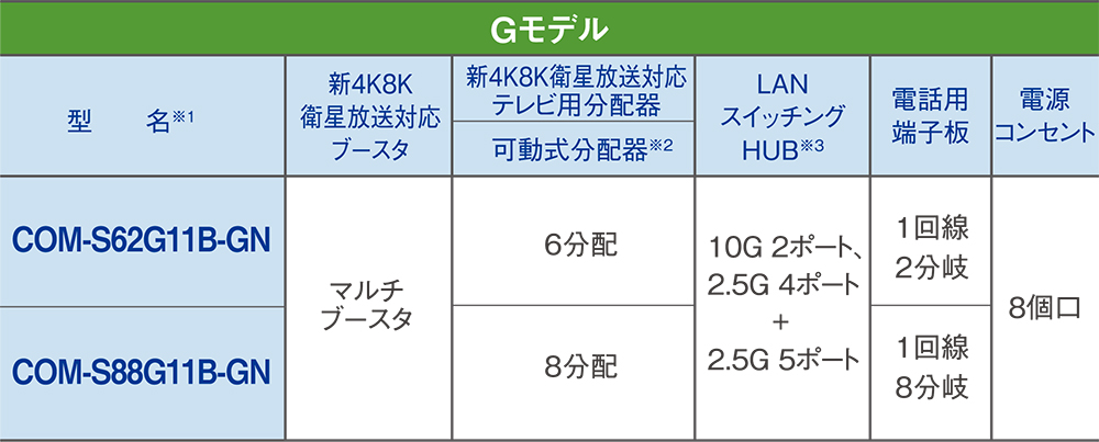当情報分電盤は、テレビ分配数の異なる 2機種を設定しています。基本ラインアップ以外の機器構成も受注生産にて承りますので、別途お問い合わせください。