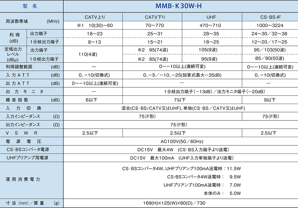 ※1 上りカット・帯域切換機能付 ※2 CATV下り帯域 デジタル-10dB運用