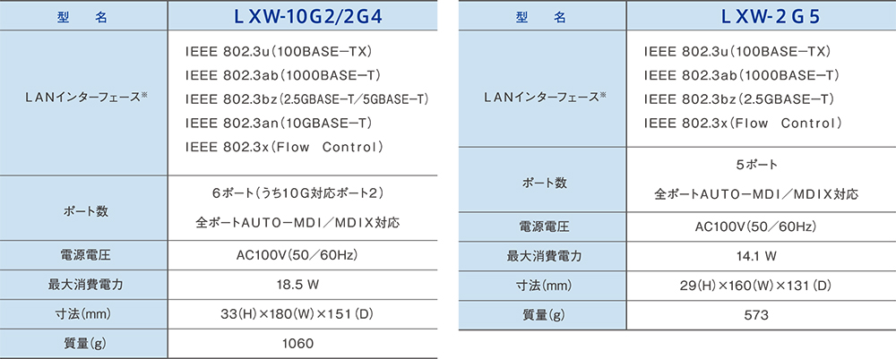 ※10Gbpsを利用するには、Cat.6AのLAN配線が必要です。2.5Gbpsを利用する場合は、Cat.5e以上のLANケーブルをご使用ください。