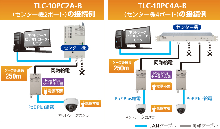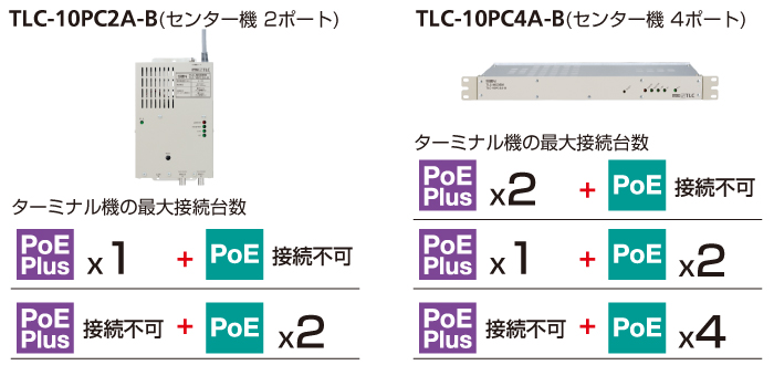 ターミナル機は、供給電力の異なるPoEタイプとPoE Plusタイプの2種類をラインアップ、用途に応じてお選びいただけます。