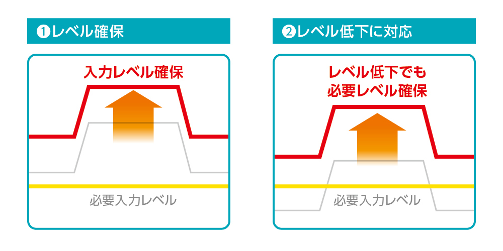 ローノイズで受信レベルを25dB増幅することで、戸別受信機への入力レベルを十分に確保します。フェージングなどのレベル低下時においても、安定受信を実現します。