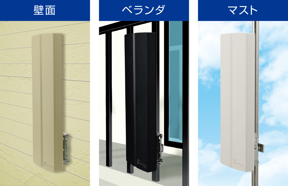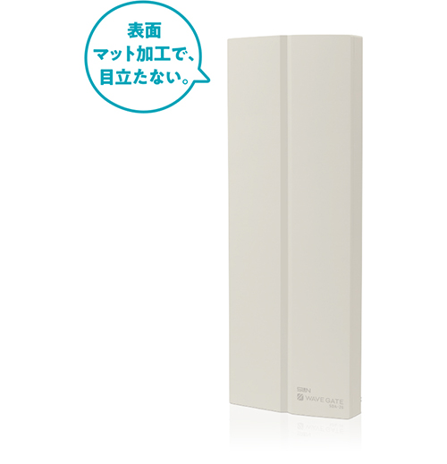 当商品は高利得タイプの26素子相当 ※2として、業界最小サイズのコンパクト設計となっています。筐体表面はマット加工が施され、カラーはアイボリーホワイト、グリーンベージュ、セミグロスブラックの 3 色を設定、家の美観を損ねることなく、住宅の壁面に調和します。