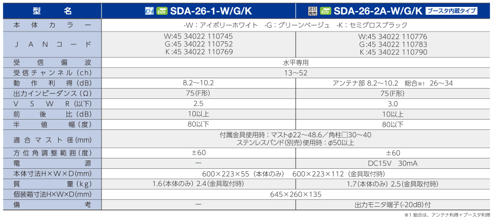地デジ用UHF平面アンテナ SDA-26シリーズ新発売