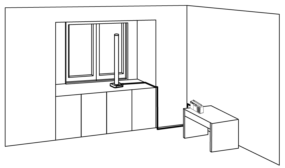 ※アンテナは防災行政無線の電波到来方向の窓際に設置し、壁などに隠れないようにしてください。壁際や窓から離れた場所は電波が弱くなり、受信が不安定になったり、受信ができなくなる場合もあります。