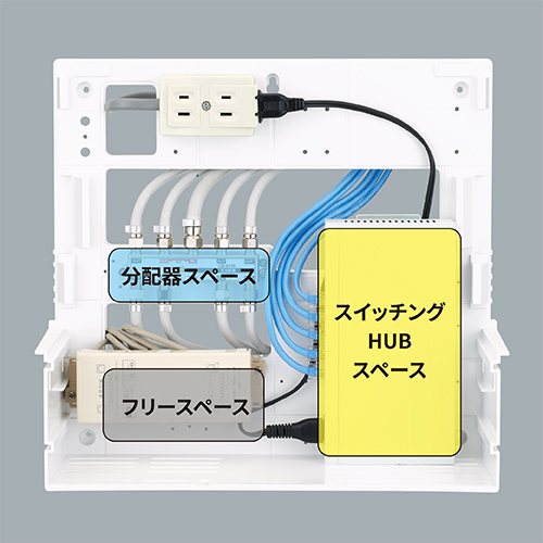 フリースペースを搭載している為、美観を損ねることなく、アクセスポイントやルータ等のネットワーク機器が設置できます。
