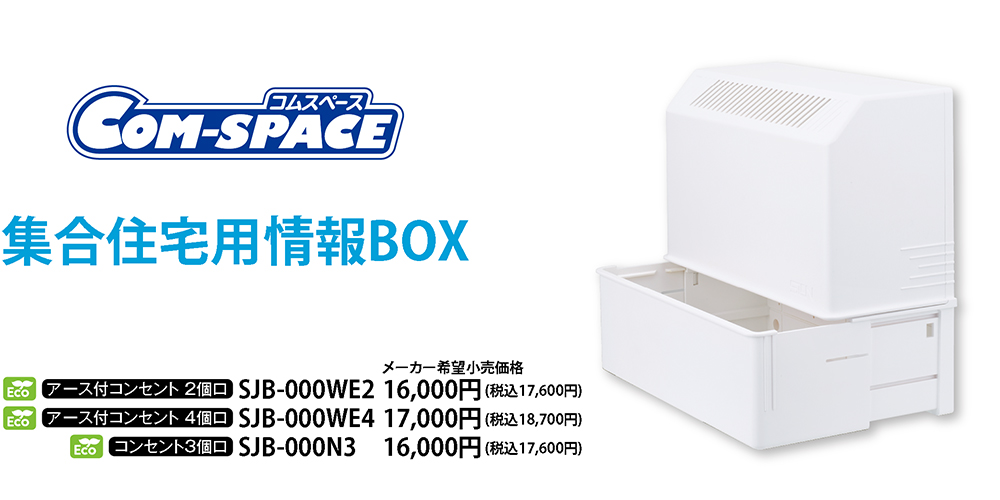 弊社(サン電子株式会社 本社:新宿)は、情報分電盤(コムスペース)シリーズにおいて、「集合住宅用 情報BOX」SJBシリーズに2機種(SJB-000WE2/-000WE4)を追加ラインアップ致します。