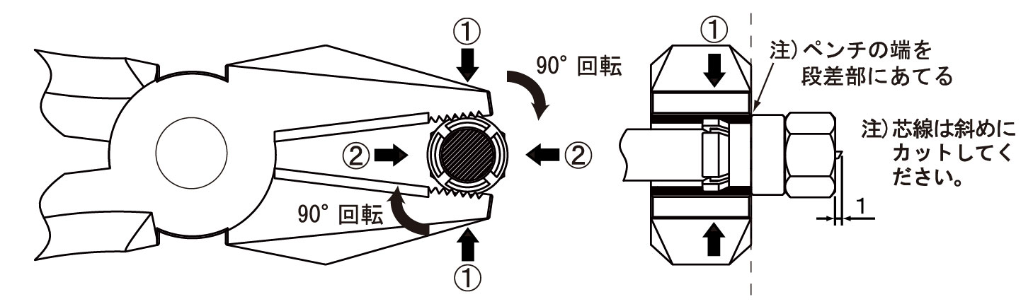 同軸ケーブル加工方法 -同軸ストリッパー-