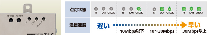 ターミナル機で通信速度を簡易的に測定することができます。 本体のSPEEDボタンを約1秒押すと測定が開始され、測定結果はLED点灯で確認できます。 ※通信速度はおおよその速度であり、実際の速度とは異なる場合があります。