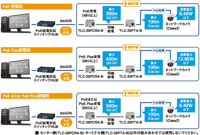 注7:センター機とPoE(PoEPlus)給電対応HUBなどを接続するLANケーブルは5m以内