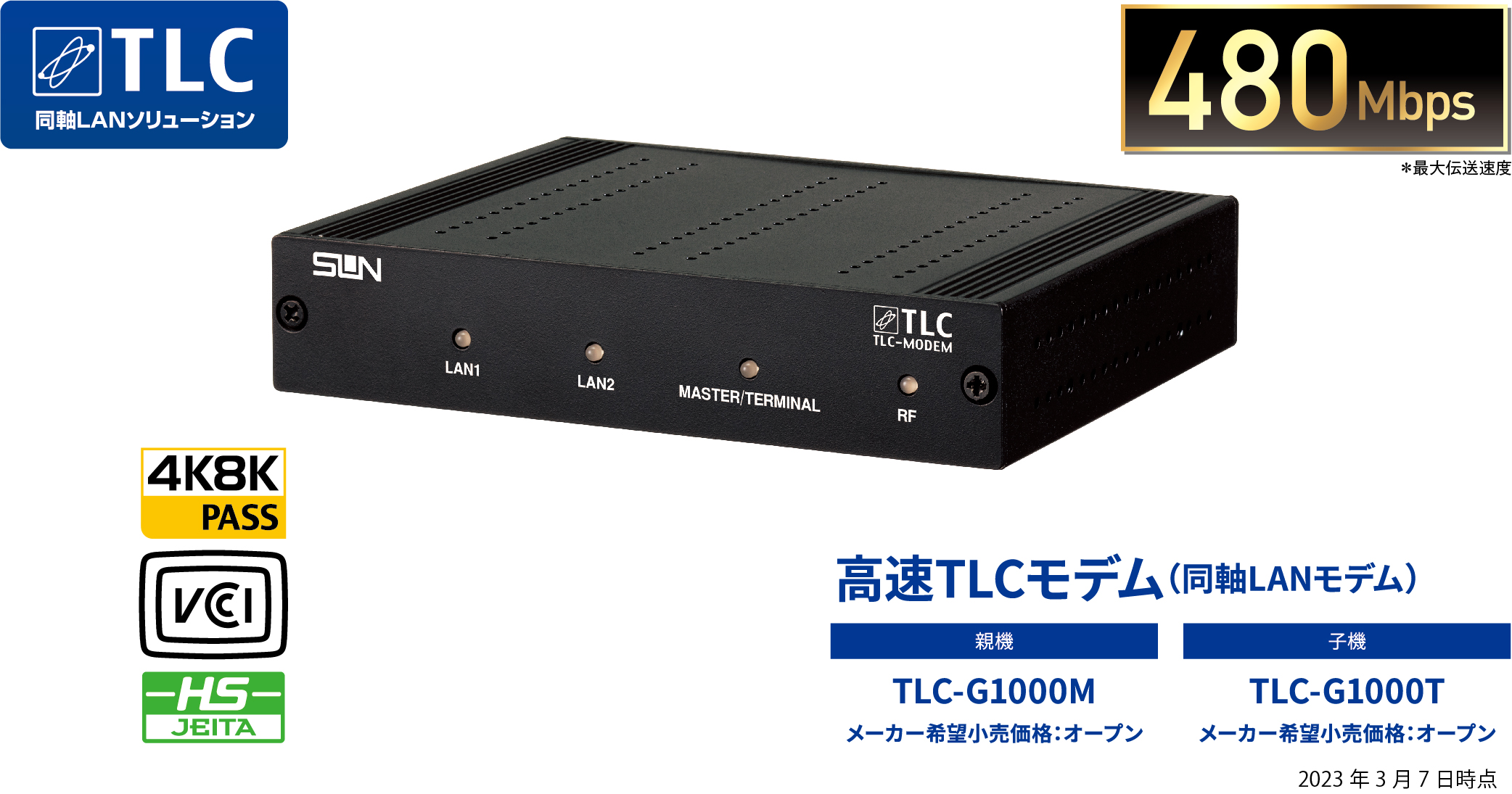 弊社(本社:東京都新宿)は、現在発売中のTLCモデム(同軸LANモデム)において、最大伝送速度480Mbps(※1)を実現、VCCIクラスBの取得や、2ポートのLAN出力を搭載した