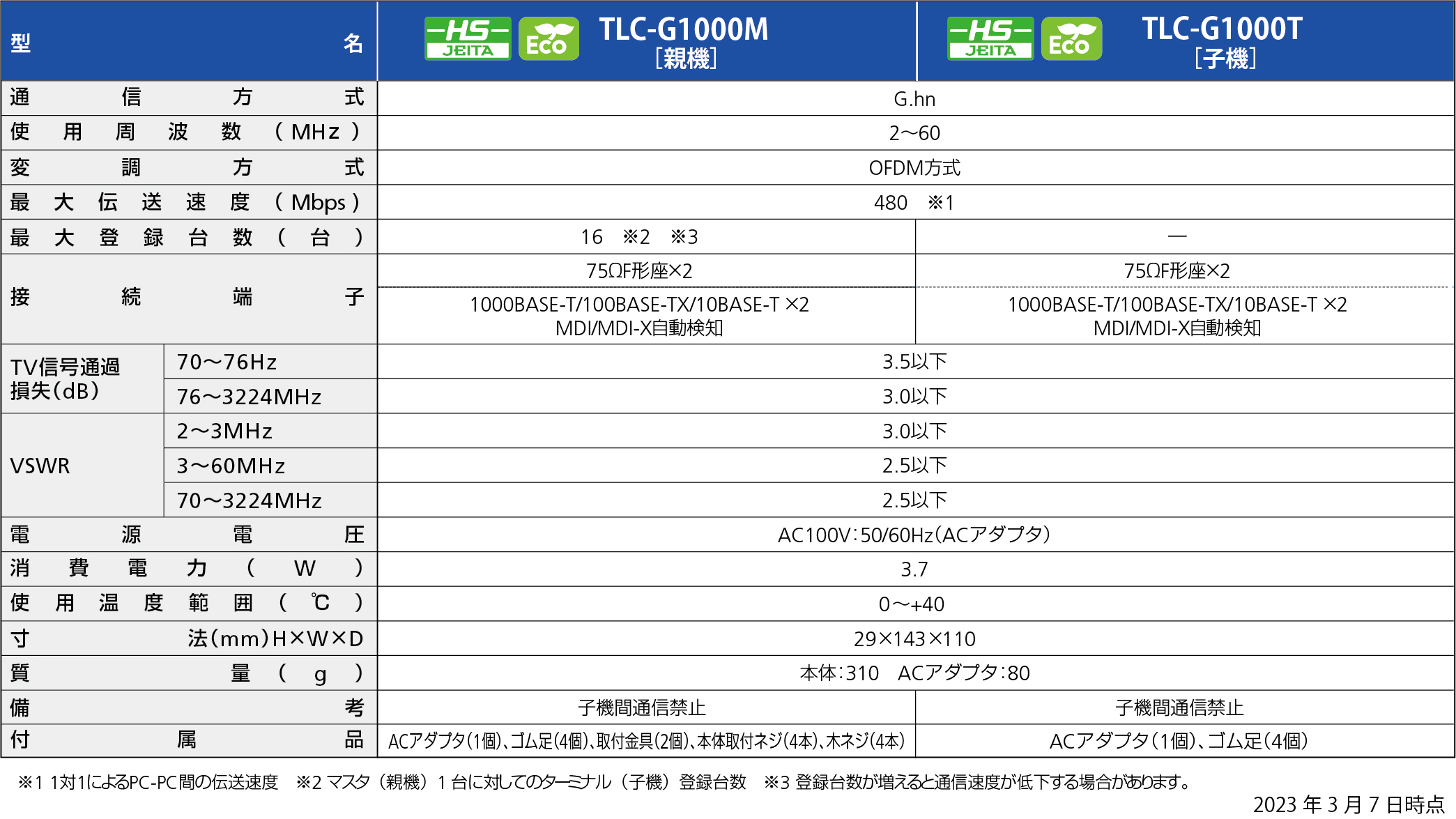 高速タイプのTLCモデム、Gシリーズ(親機:TLC-G1000M、子機:TLC-G1000T)をラインアップ。
