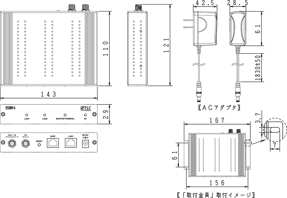 ※取付金具は、親機:TLC-G1000Mに予め付属しています。子機:TLC-G1000Tは別途お買い求めください。