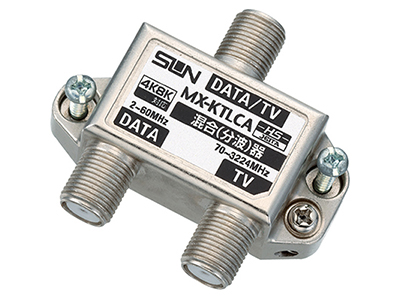 TLCモデム(同軸LANシステム)で使用されているTLC信号(2~60MHz)とTV信号(70~3224MHz)を混合(分波)できます。