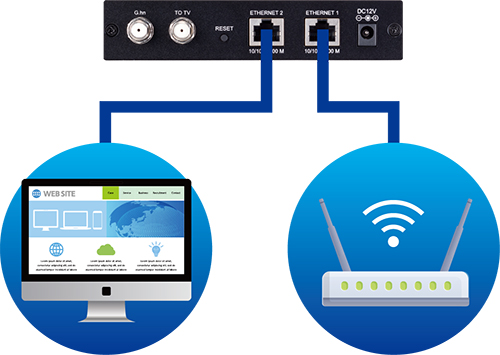 本体背面にLANポートを2端子設置することで、2つのネットワーク機器をスイッチングHUB無しで接続することが可能です。