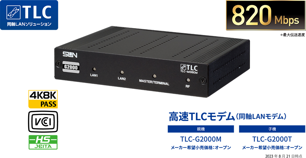 ~ 実効速度 820Mbpsを実現~ 高速TLCモデム(同軸LAN)G2000モデル発売<