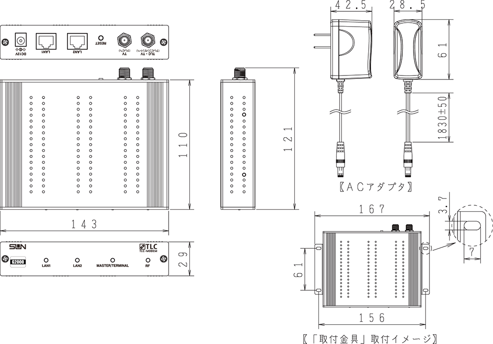 ※取付金具は、親機:TLC-G2000Mに予め付属しています。子機:TLC-G2000Tは別途お買い求めください。