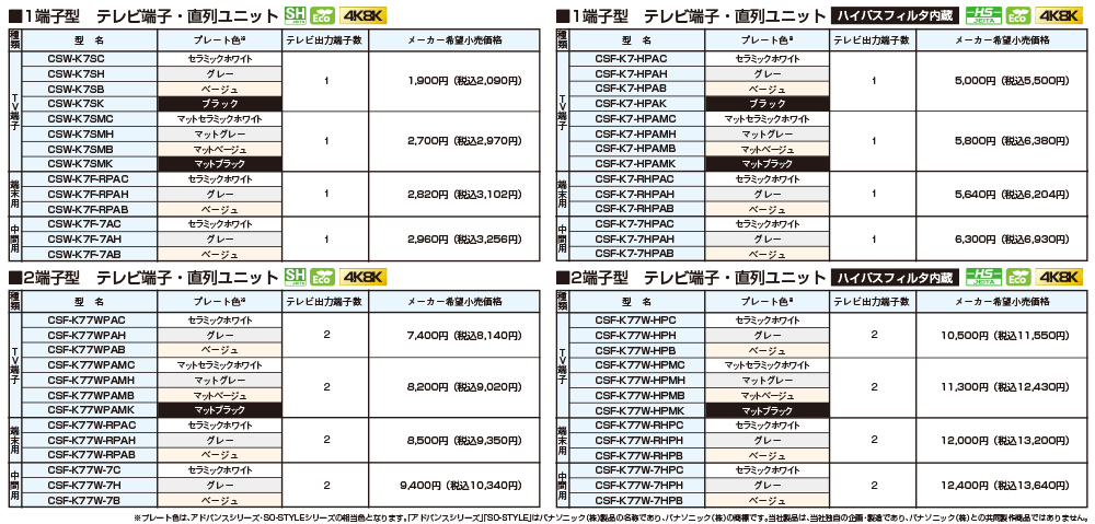 ~ さまざまな部屋に調和するカラー ~ テレビ端子 カラーバリエーション追加のお知らせ