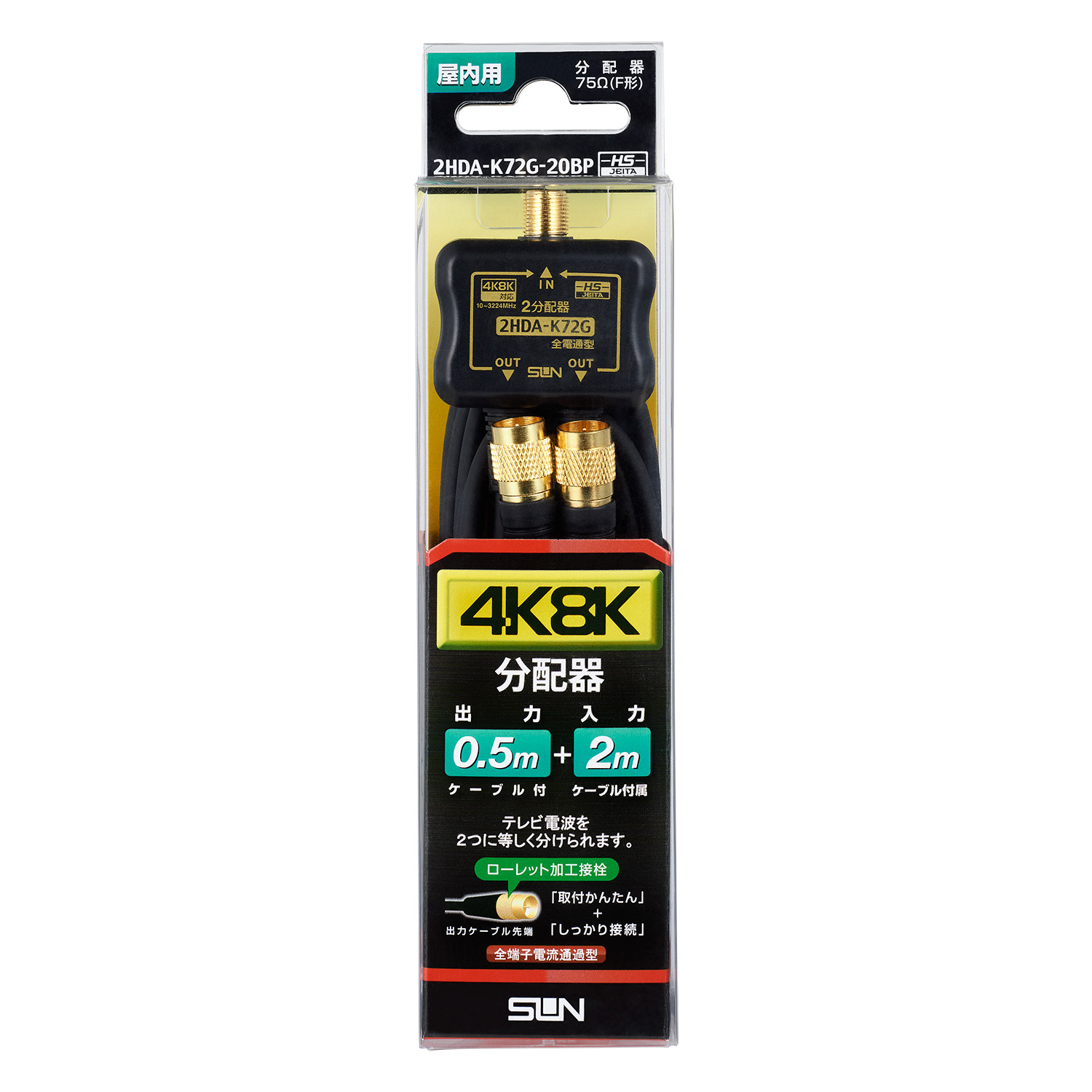 ローレット加工接栓型 ケーブル付分配器 2HDA-K72G-20BP