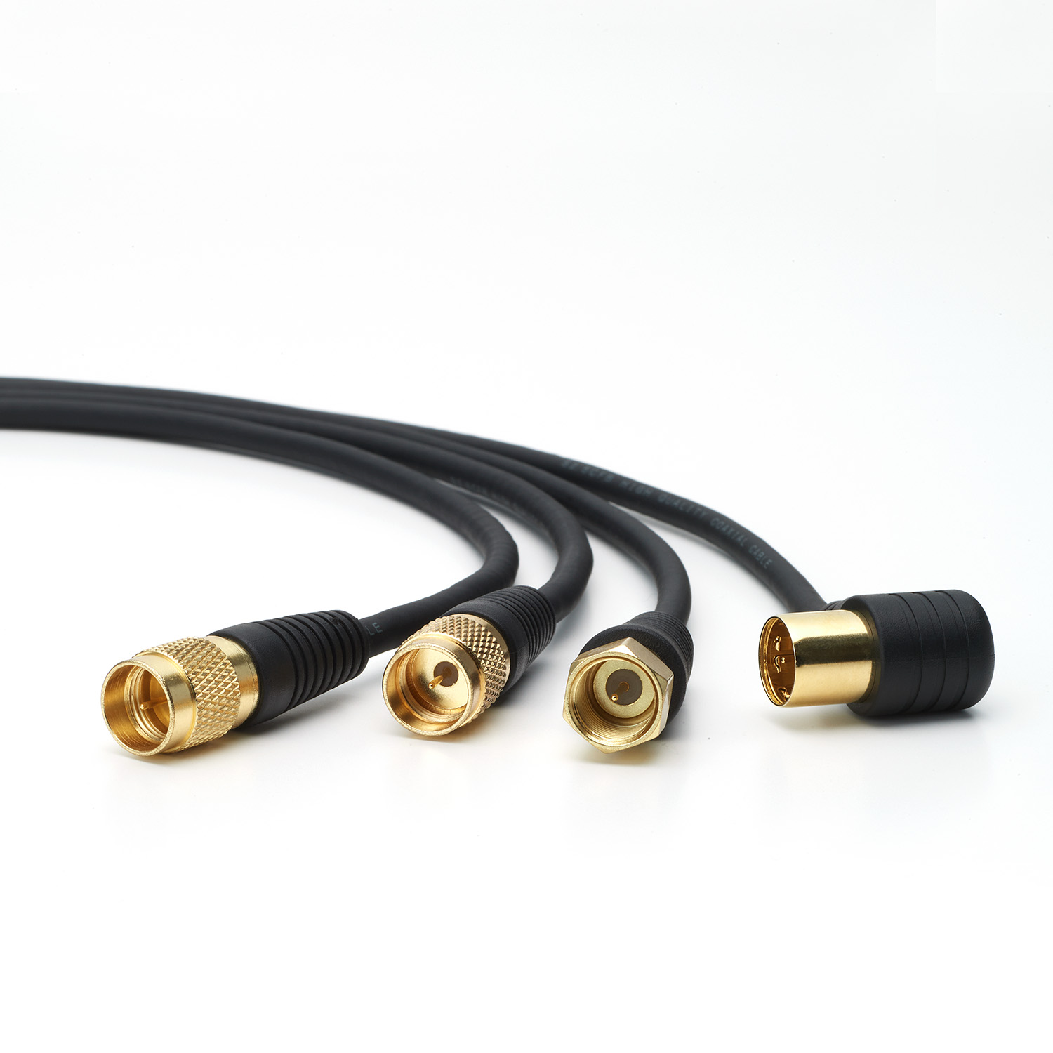 - 入出力には2.5Cケーブルを採用(入力側2.0m 出力側0.5m)、ケーブルの取り回しが容易です、また出力端子はローレット加工を施したF形コネクタを採用しています。