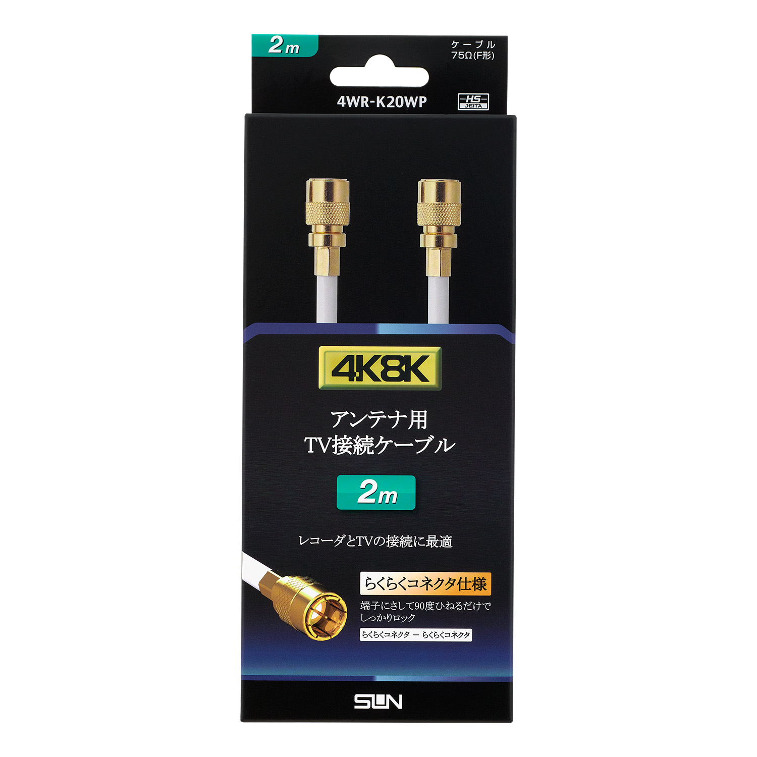 4K8K衛星放送対応 テレビ接続ケーブル 2m 4WR-K20WP