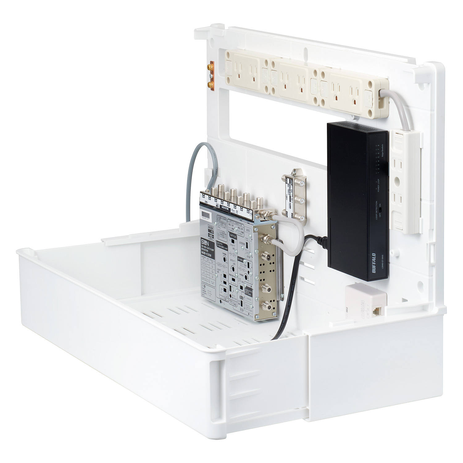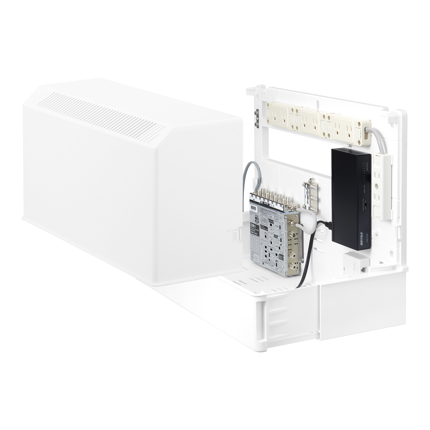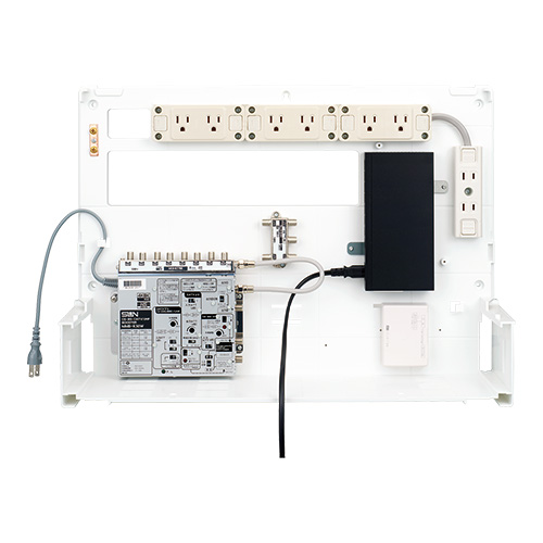 - インターネット、電話、テレビの配線を一つにまとめることができる、住宅用の情報分電盤です。