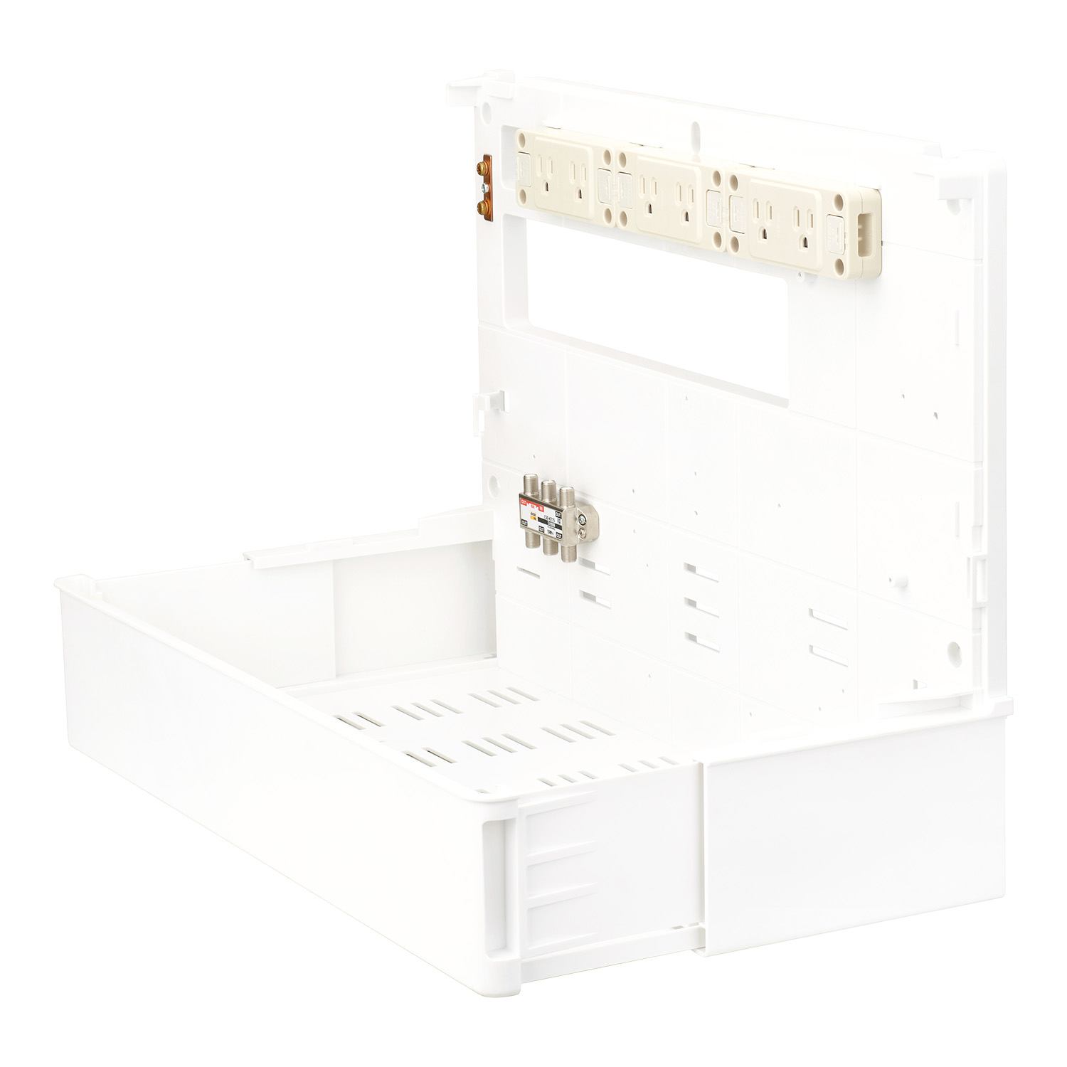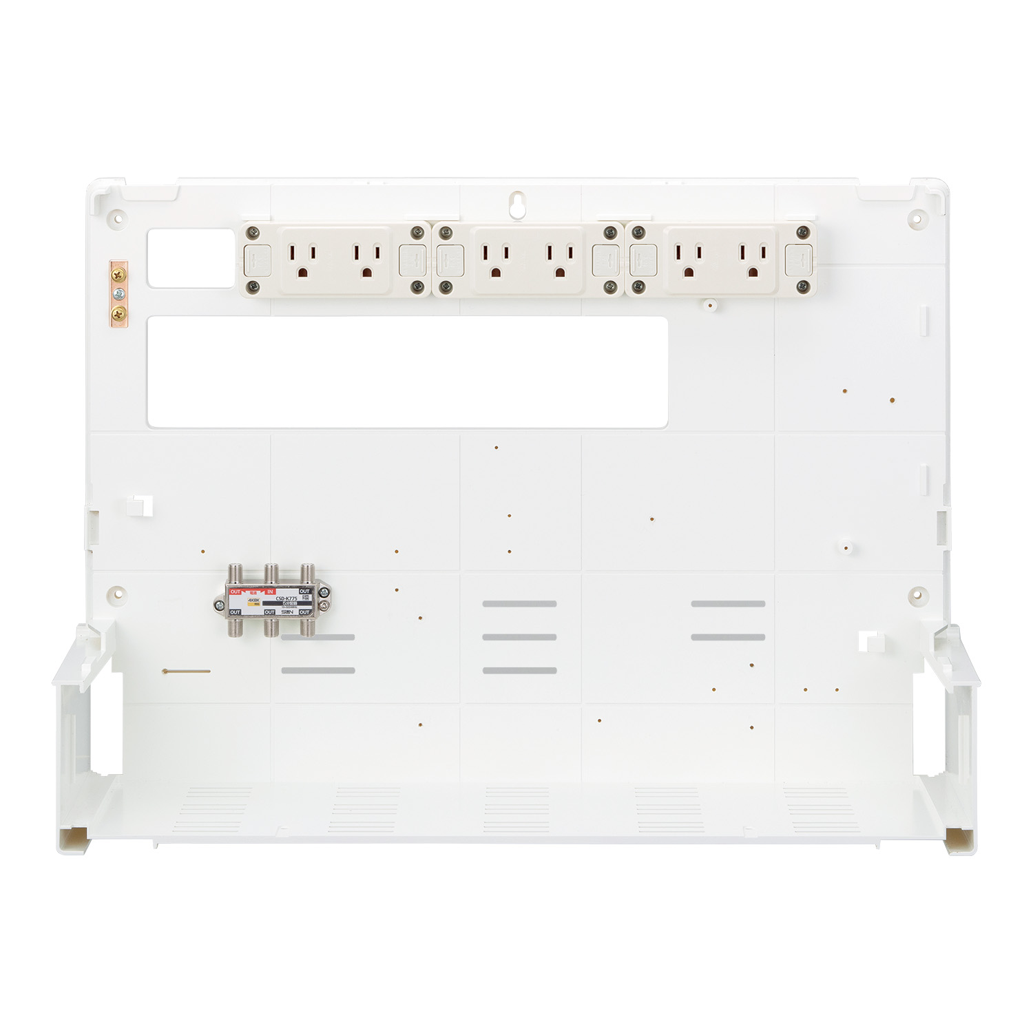 - インターネット、電話、テレビの配線を一つにまとめることができる、住宅用の情報分電盤です。