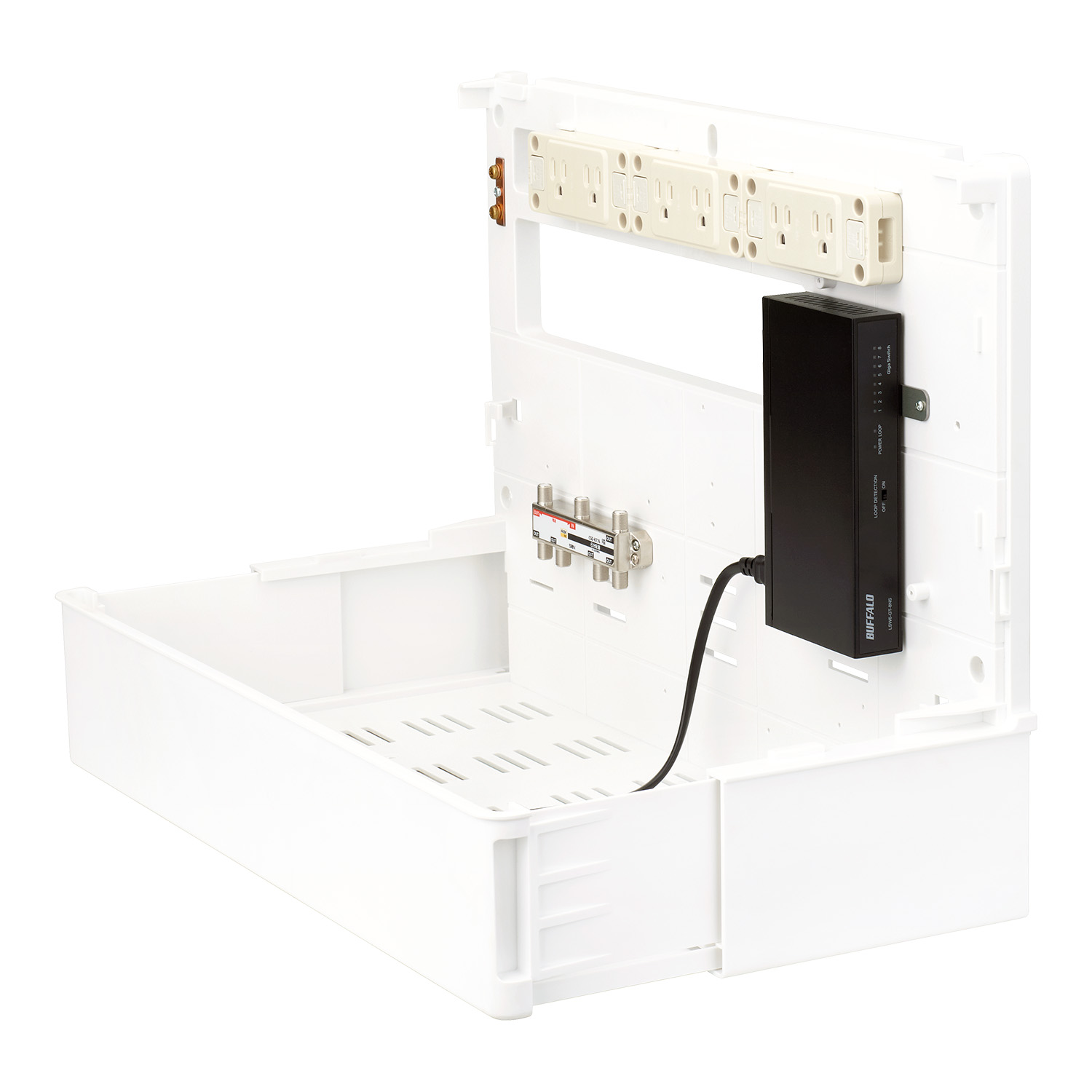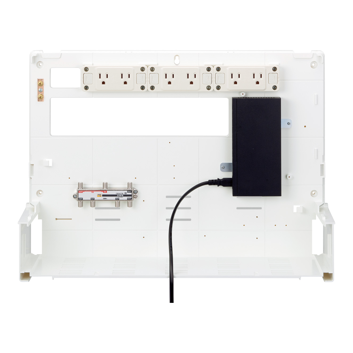 - インターネット、電話、テレビの配線を一つにまとめることができる、住宅用の情報分電盤です。