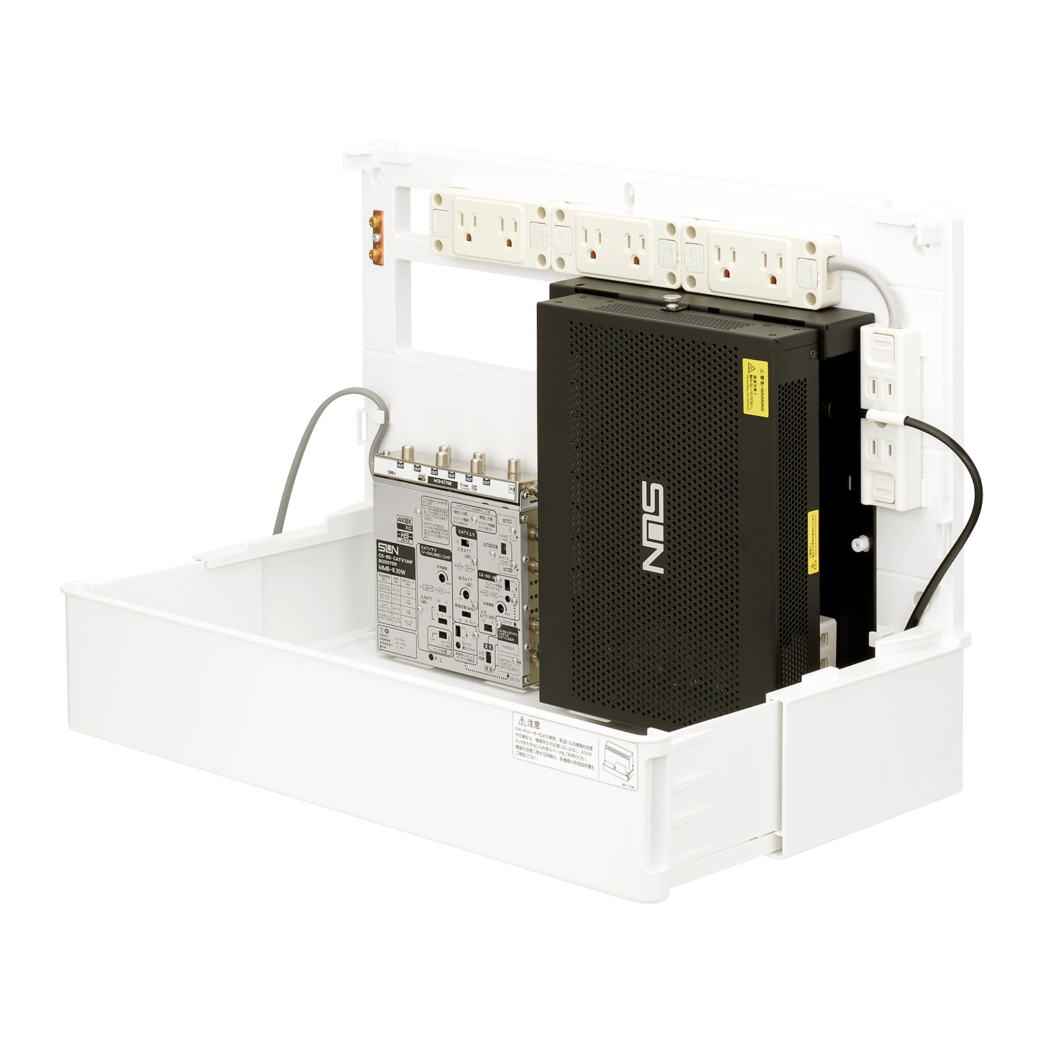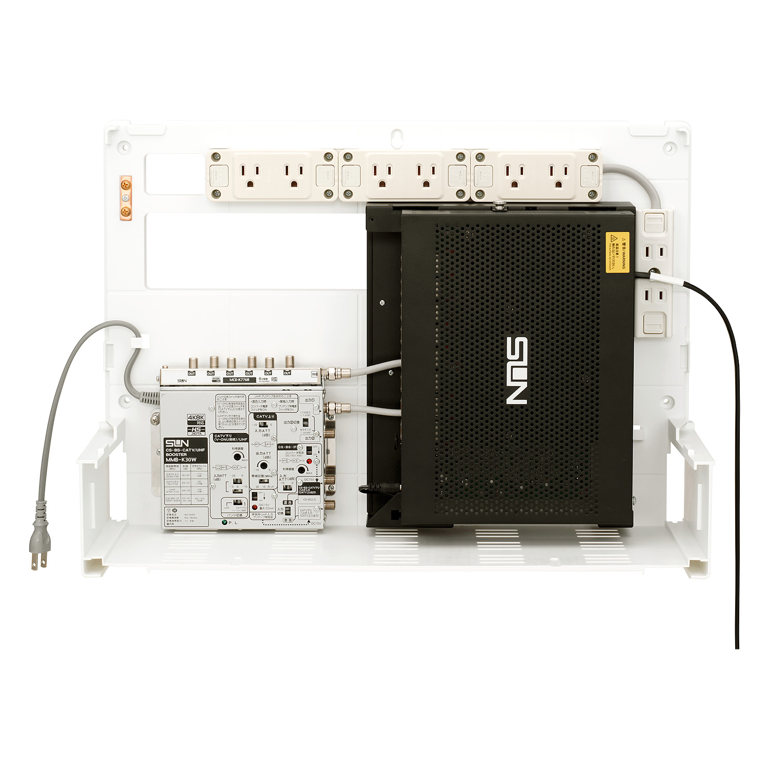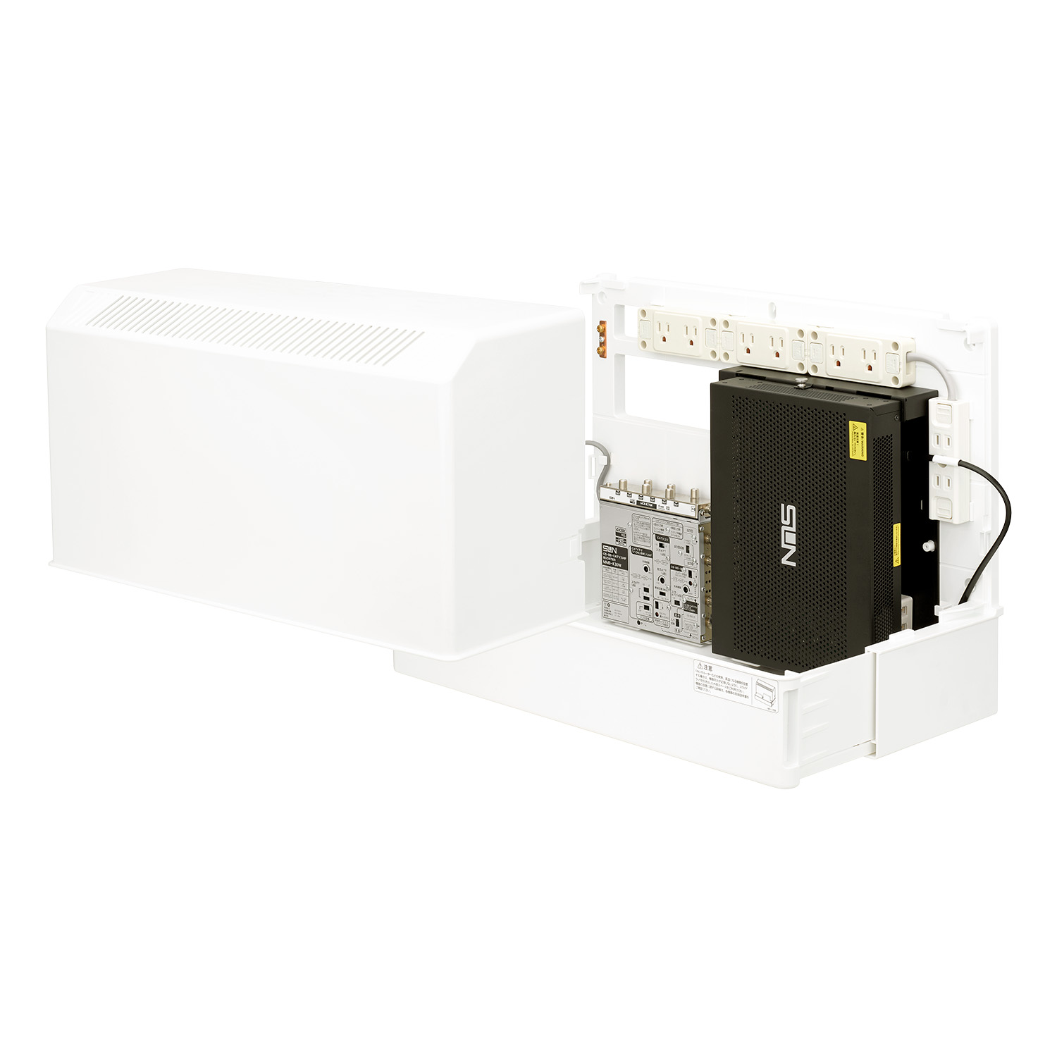 - インターネット、電話、テレビの配線を一つにまとめることができる、住宅用の情報分電盤です。