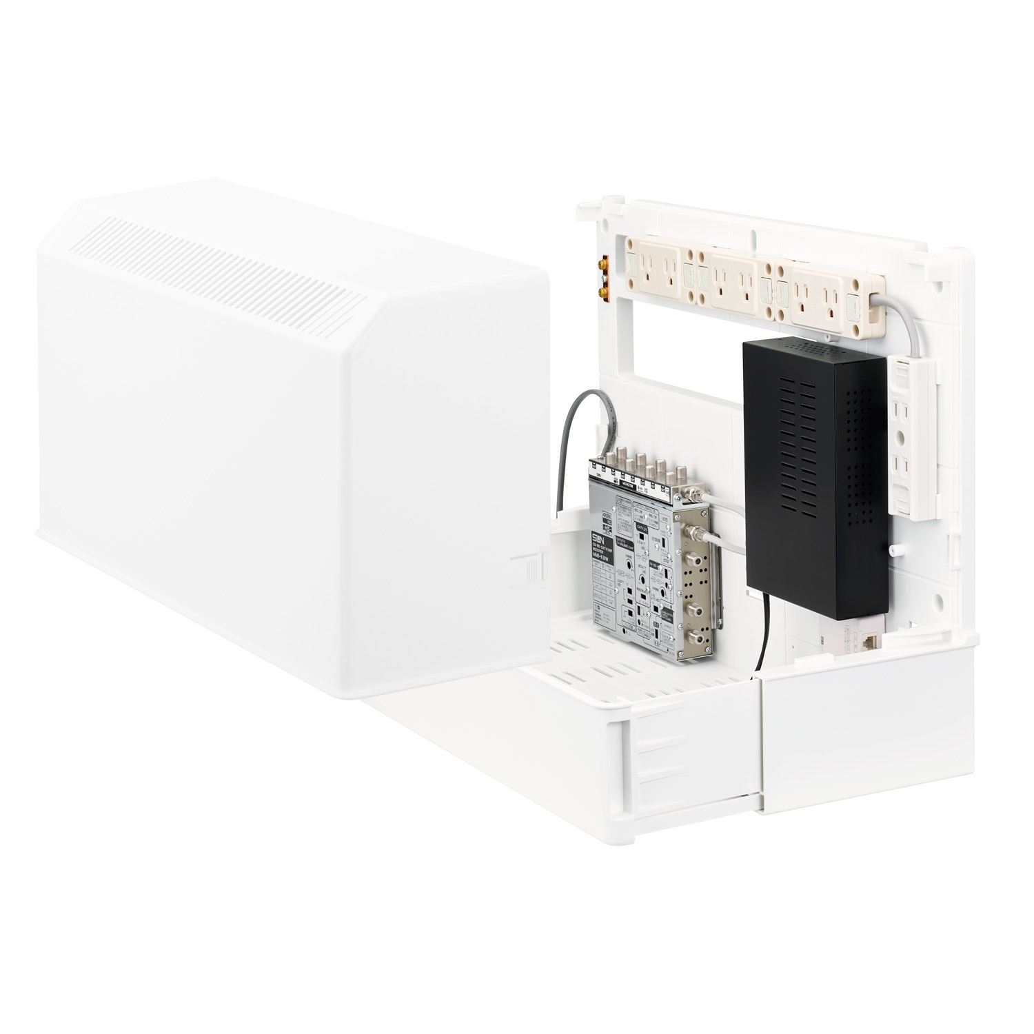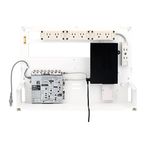- インターネット、電話、テレビの配線を一つにまとめることができる、住宅用の情報分電盤です。