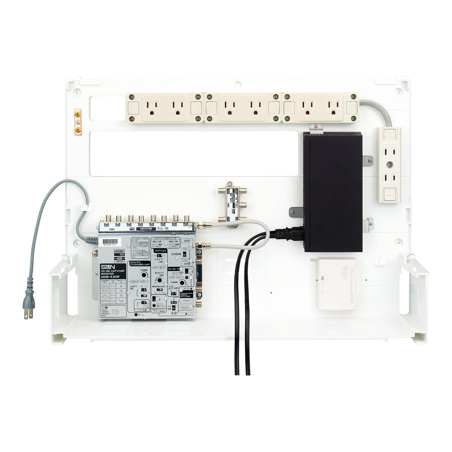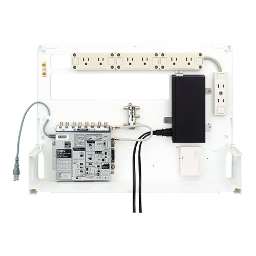 - インターネット、電話、テレビの配線を一つにまとめることができる、住宅用の情報分電盤です。