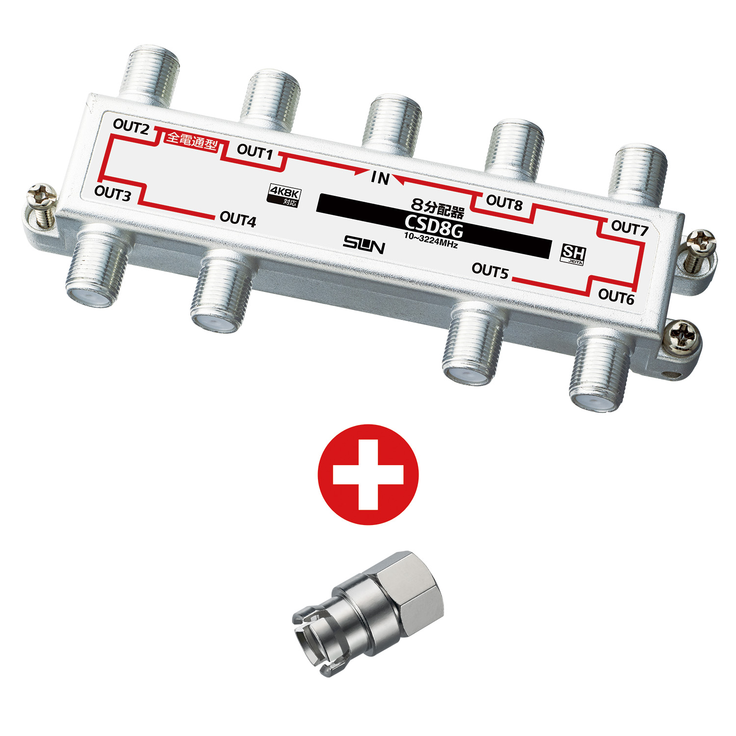 すご楽コネクタ付属 8分配器 全端子電通型 CSD8G-SR