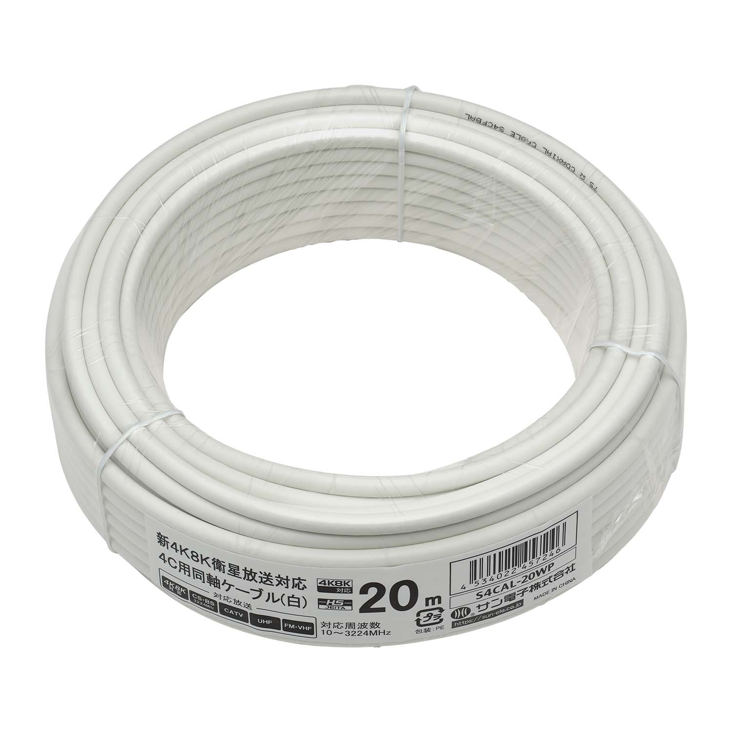 4K8K衛星放送対応 4C用アルミ編組同軸カットケーブル 20m S4CAL-20WP