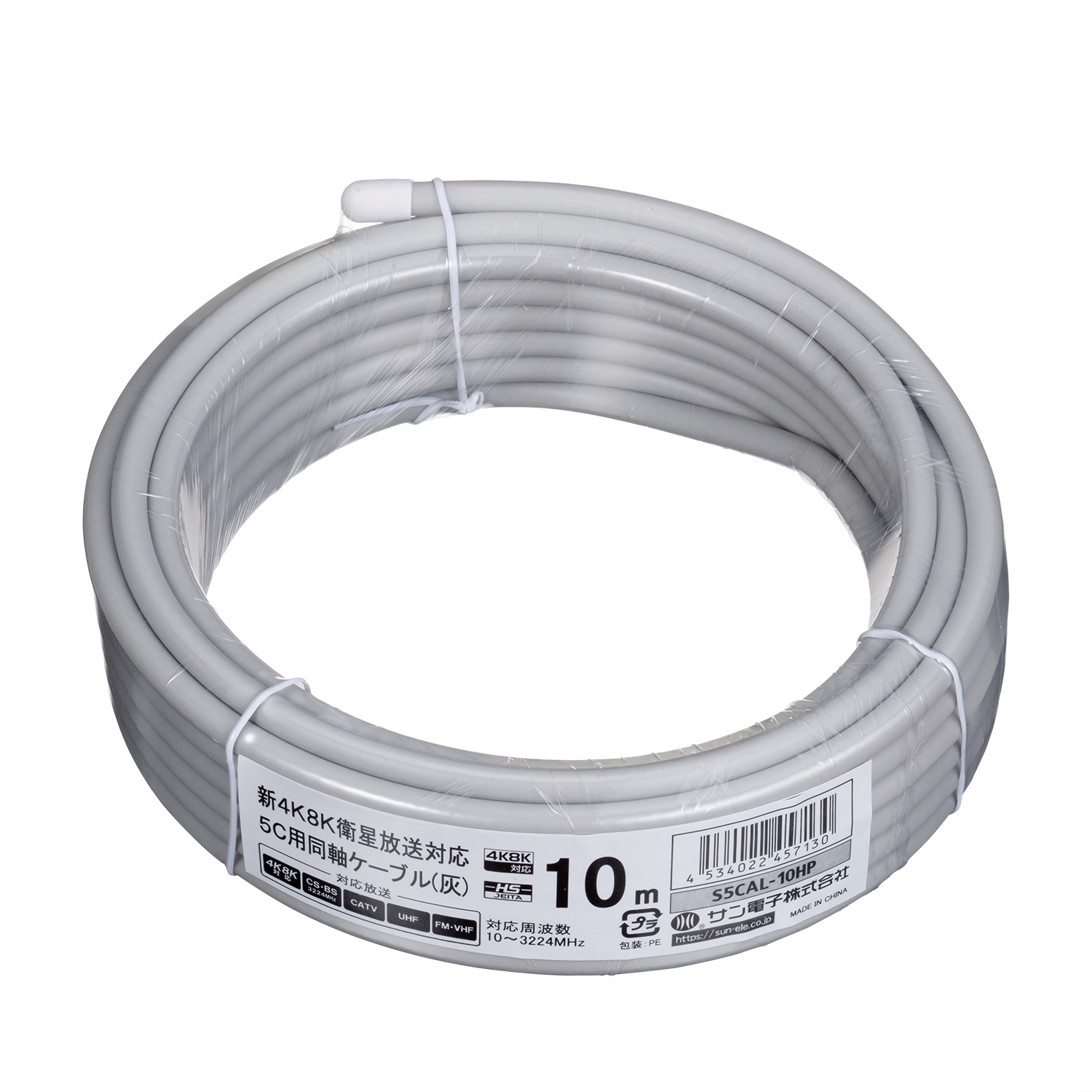 4K8K衛星放送対応 5C用アルミ編組同軸カットケーブル 10m S5CAL-10HP