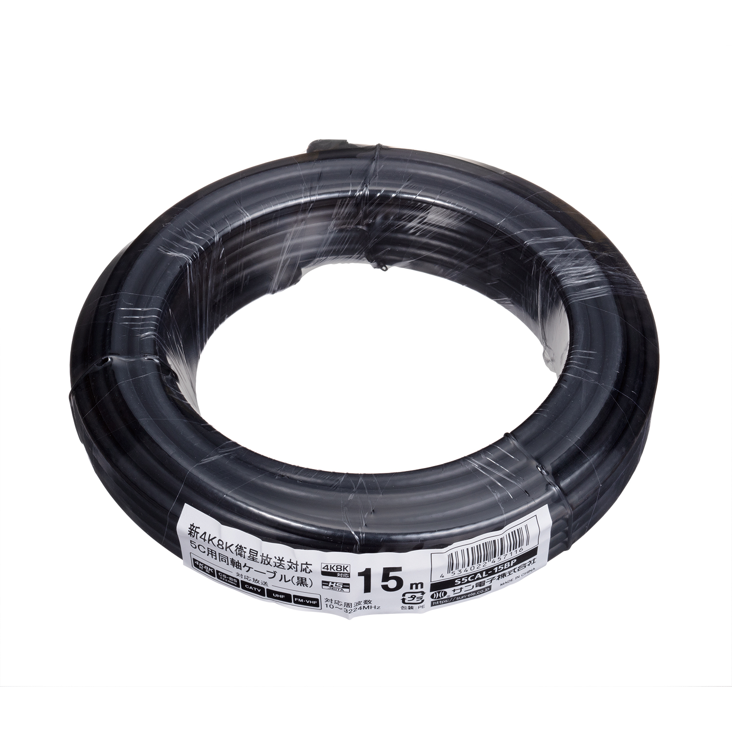 4K8K衛星放送対応 5C用アルミ編組同軸カットケーブル 15m S5CAL-15BP