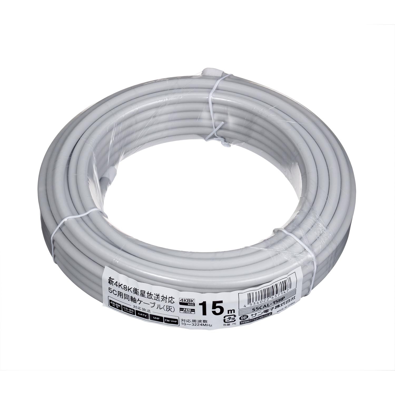 4K8K衛星放送対応 5C用アルミ編組同軸カットケーブル 15m S5CAL-15HP