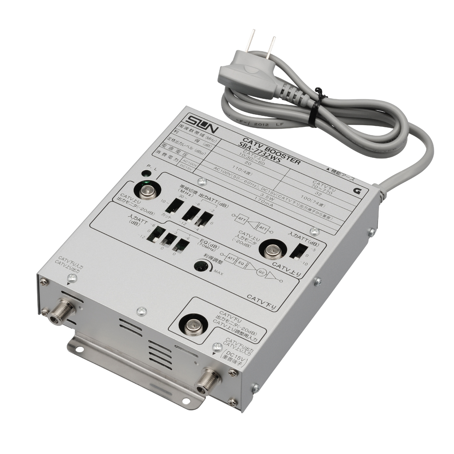 - 上り帯域切換スイッチ付きの双方向CATVブースタです。