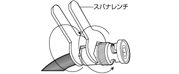 本体と締め付け金具部を手でねじ回しの容量で締め付けて、最後にスパナを2つ使い、適度な力で増し締めします。