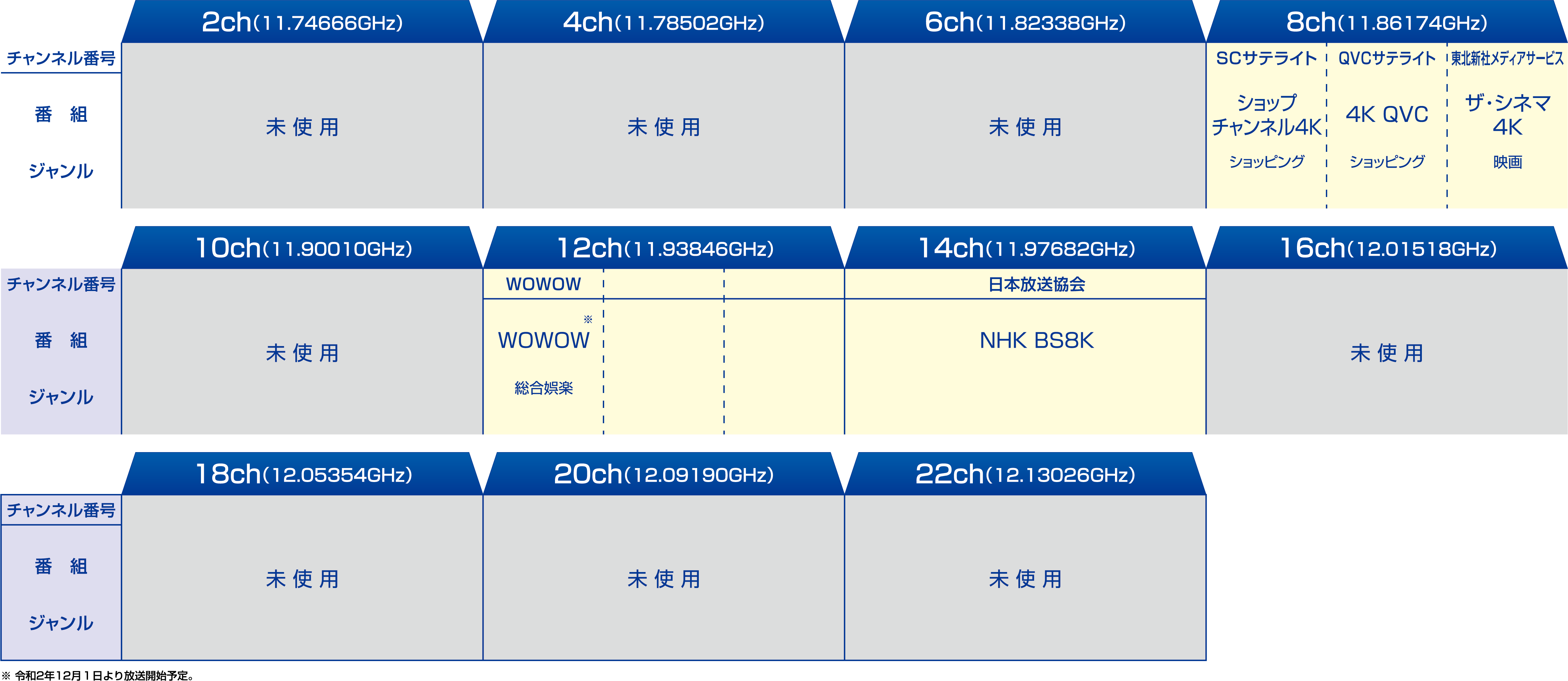 BS放送(右旋)のチャンネル構成