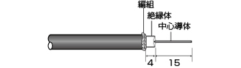 同軸ケーブルを図のように心線と絶縁体を出すよう加工します。編組を短くカットし、反対側に折り返します。