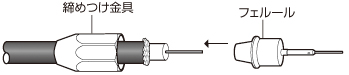 締め付け金具を先に通します。その後、中心コンタクトピンが着いた状態のフェルールを挿入します。