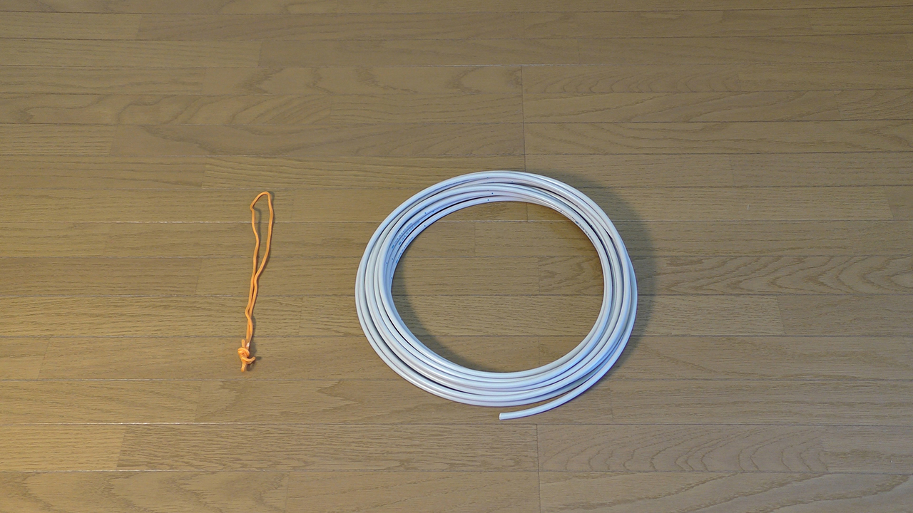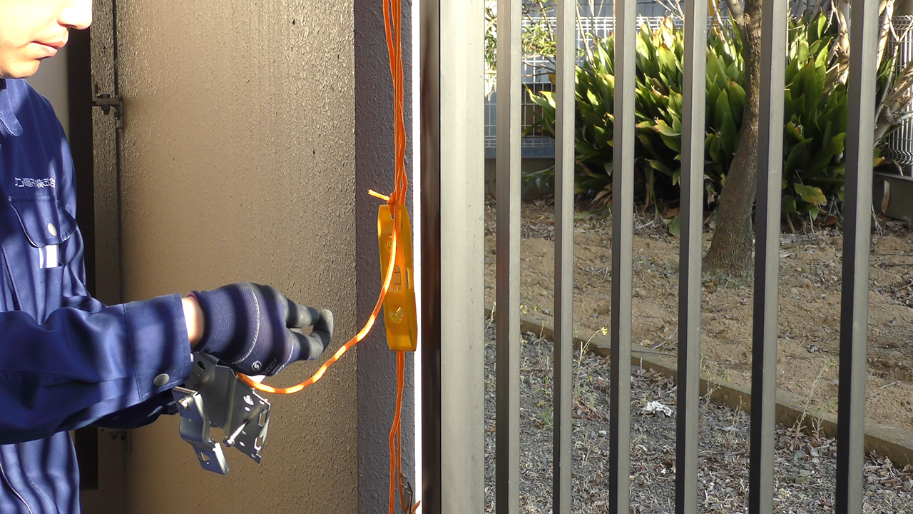 取り付ける前に付属品が全て揃っているか確認してください(左写真)。中央の写真はお客様でご用意いただくものです。アンテナ取り付け作業にはスパナ(付属品)を使用しますが、高所での作業となれば、不用意な落下事故を防止する為にも、スパナの紐通し穴を使って、落下防止策を施して作業をお願いします。