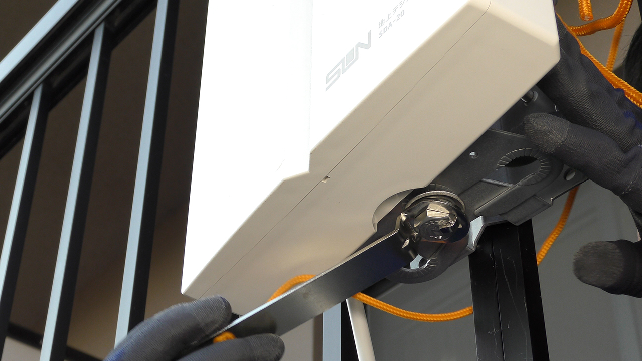 方位角調整を行ないます、ゆっくりと動かし、アンテナレベルが最大値になるところで固定して下さい。