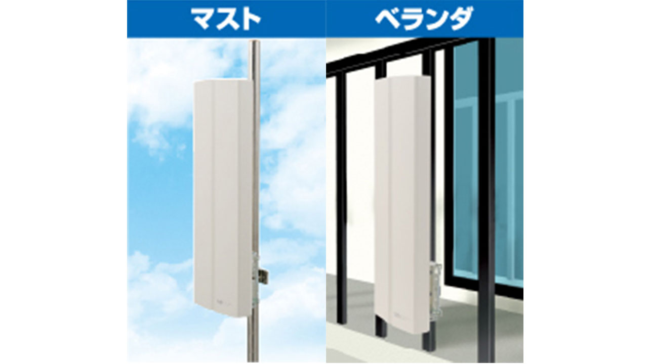 平面アンテナは、シーン合わせて壁面・マスト・ベランダなどへ設置することができます。